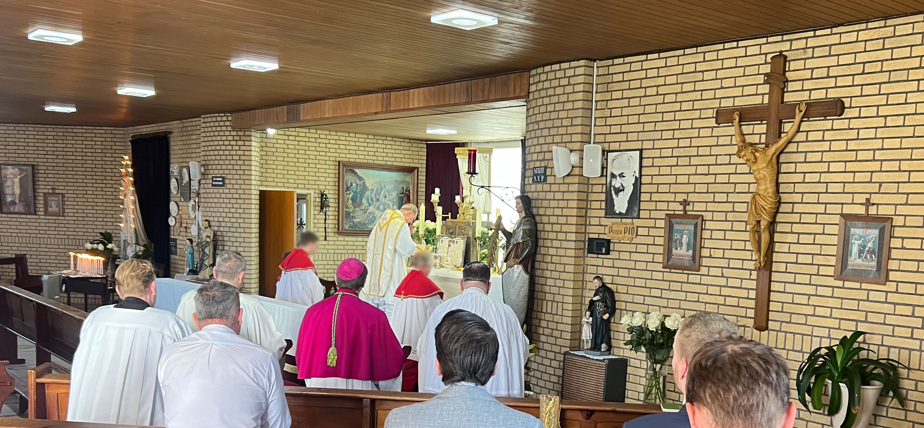 Bezoek van bisschop Mrg. dr. Ron van den Hout (Bisdom Roermond) en pastoor Schwillens van de parochiecluster Stein aan de kapel van het Bitter Lijden op 11 mei 2025