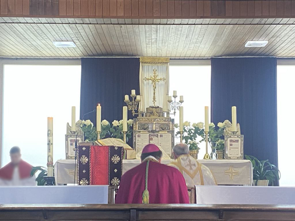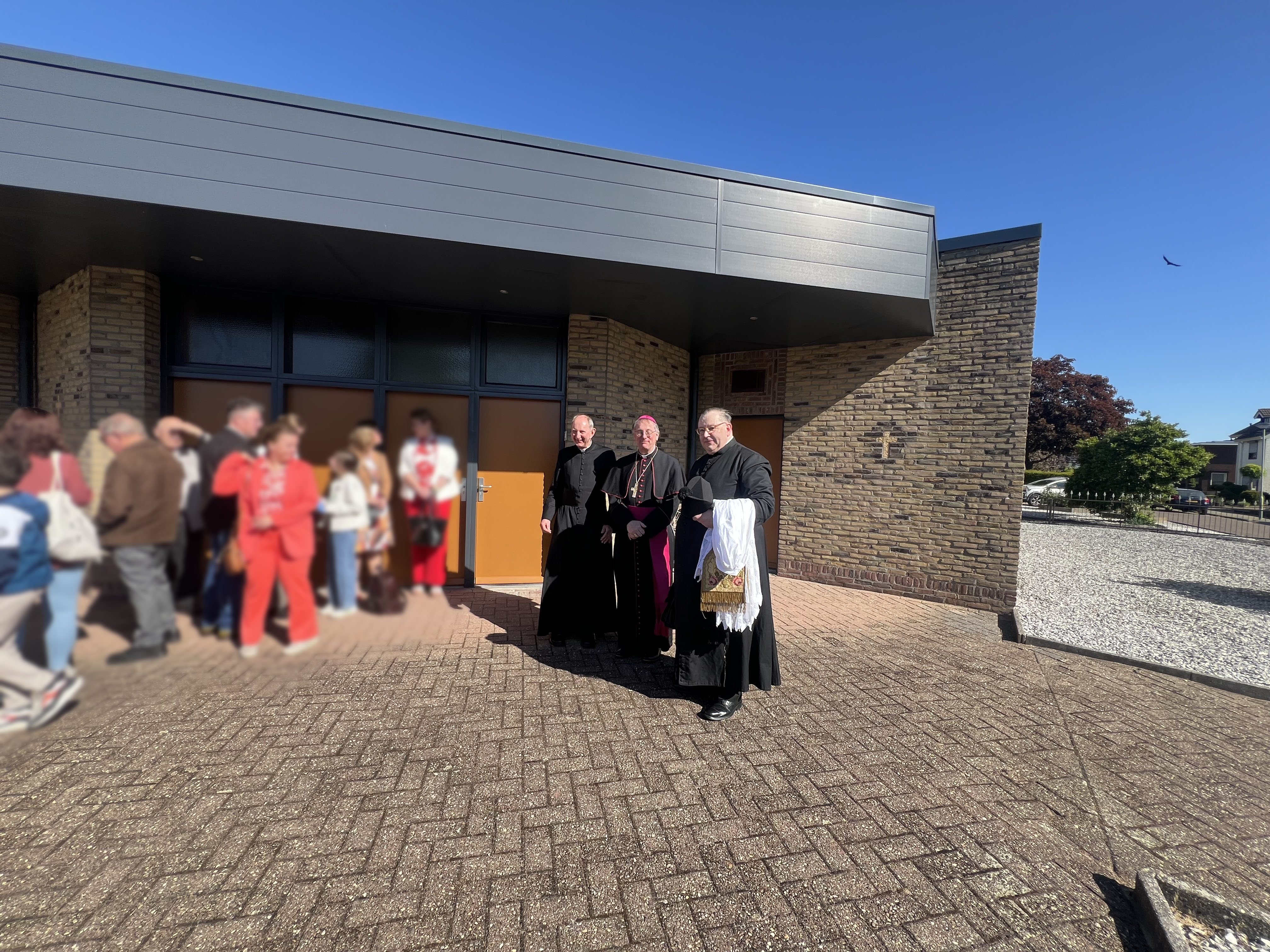 Bezoek van bisschop Mrg. dr. Ron van den Hout (Bisdom Roermond) en pastoor Schwillens van de parochiecluster Stein aan de kapel van het Bitter Lijden op 11 mei 2025